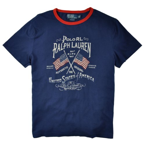 Jersey tee is crafted from soft 100% cotton with a vintage patriotic graphic, contrasting crewneck and Polo's slim, custom fit. For example, a size L chest runs about 42 inches.